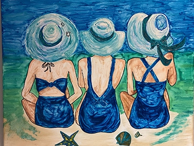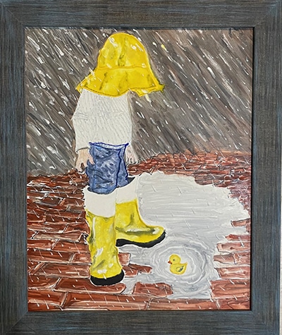 Hashemi-Toroghi’s basement continued to be her canvas as she experimented with crayon. “I had a set of shelving that I was going to throw out and instead tried the technique and created an outline of a tree using the brown crayon and it turned out so cool. I experimented on the basement floor creating water and the ocean. It has been a struggle and there has been a learning curve but I enjoy creating with crayons. A simple crayon can bring such vibrant life.”